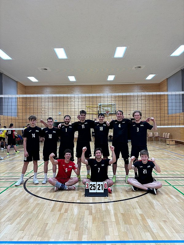 Im ersten Satz spielte der eigentliche Diagonal/Mitte Niklas auf dem Zuspiel, wodurch der erste Satz ziemlich zäh startete und es ein Kopf an Kopf Rennen war. Durch einige starke Angriffe über außen und Kombinationen über die Mitte holten wir einige Punkte auf unsere Seite. Jedoch lief es bei den Gegnern ähnlich und durch einige clevere Bälle wurde es knapp. Gegen Ende wechselten wir den eigentlichen Zuspieler Sebastian ein, welcher den ersten Satz auf unsere Seite holte. Um unsere eigentlichen Stärken zu demonstrieren, starteten wir mit der stärksten Aufstellung in Satz 2, welcher einseitig und schnell mit unschlagbaren 25:13 auf unser Konto ging. Der dritte Satz lief ähnlich und mit starkem Aufschlagsdruck entschieden wir den letzten Satz mit 25:12 ebenfalls für uns!